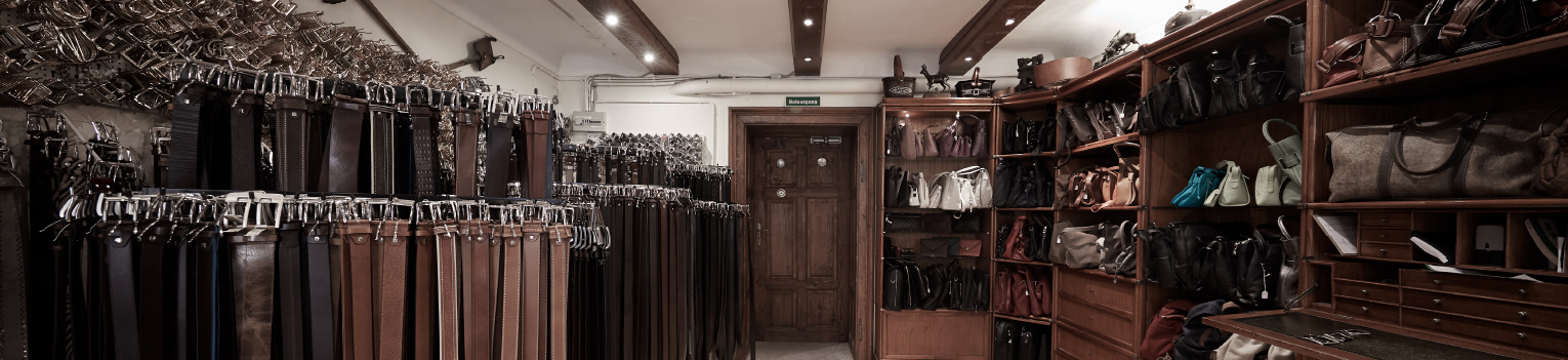 Auf zwei Etagen finden Sie Damen- und Herrengürtel sowie Gürtelschnallen für